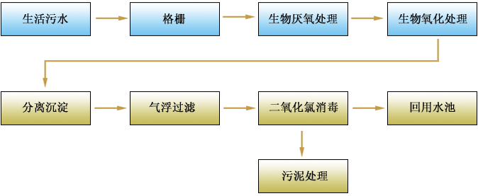 ※本工藝采用的是生物處理無剩餘汙泥技術,微生物把有機物和有害汙染轉化為空氣-氮氧化和物、熱量和水。因此汙泥量少,減少了管理費用。